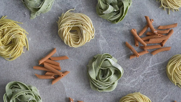 Pasta variety deluxe! Nina brings 7 different missions for your pasta action. Delight your loved ones with homemade Spaghettini, spaghetti, spaghettoni, narrow ribbon pasta, wide ribbon pasta, penne or lasagne.
