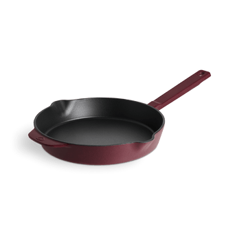 Damit wird die Gusseisen Bratpfanne dich überzeugen. Gusseisen hat ideale Materialeigenschaften für die Aromaentwicklung deiner Speisen. Es lässt sich auf bis zu 300 °C erhitzen und hält diese Temperatur dank thermaler Trägheit besonders lange. So entstehen bei deinem Gargut schnell tolle Krusten mit tiefen Röstaromen, während das Innere noch zart bleibt. Der Bratensatz am Boden der emaillierten Gusspfanne ist deine Basis für Bratensaucen und Pfannen-Jus.